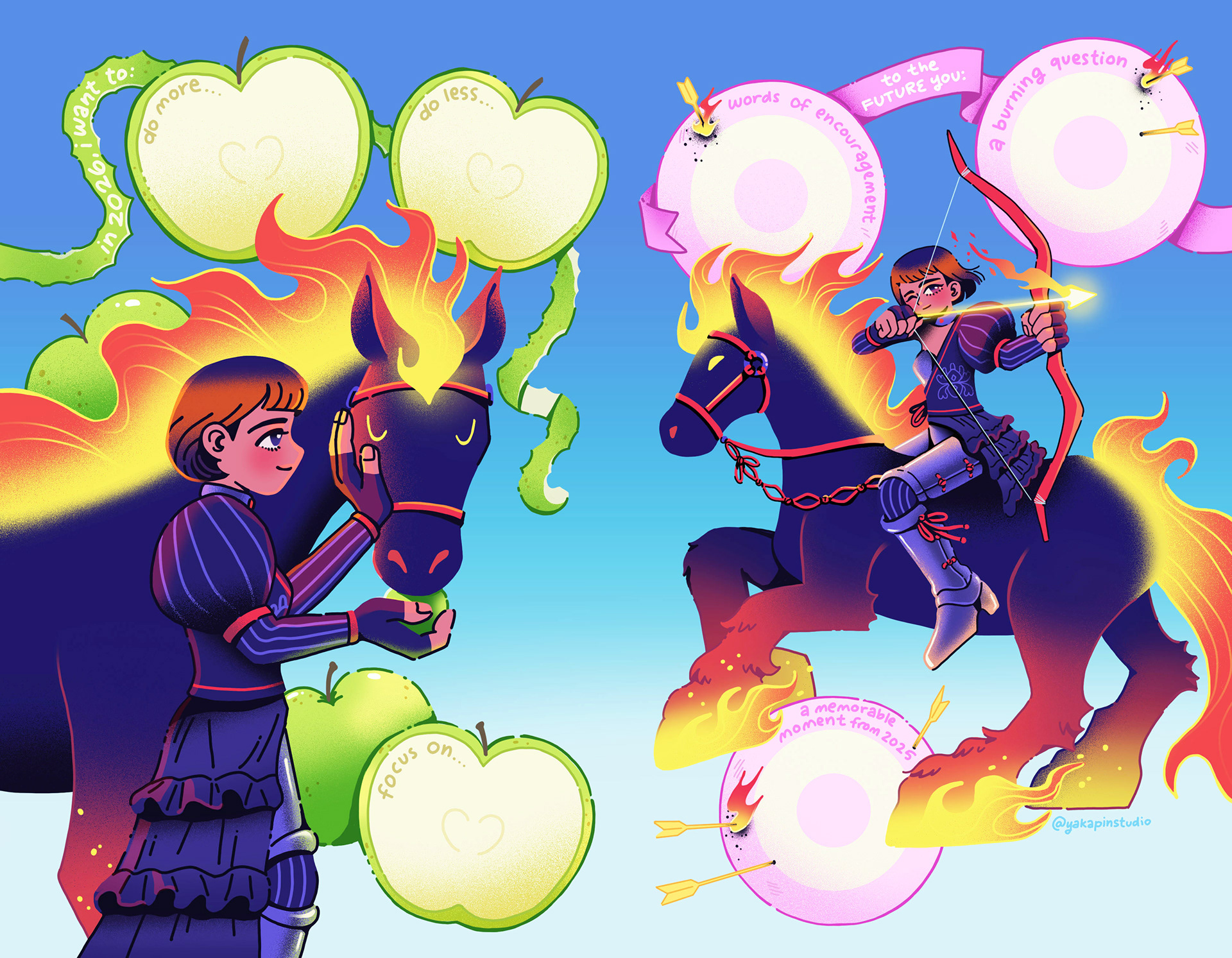 Created this as my submission to the AZN Zine Fest zine. The theme was "Hold Your Horses" There are empty spots for readers to fill their resolutions in 2026.