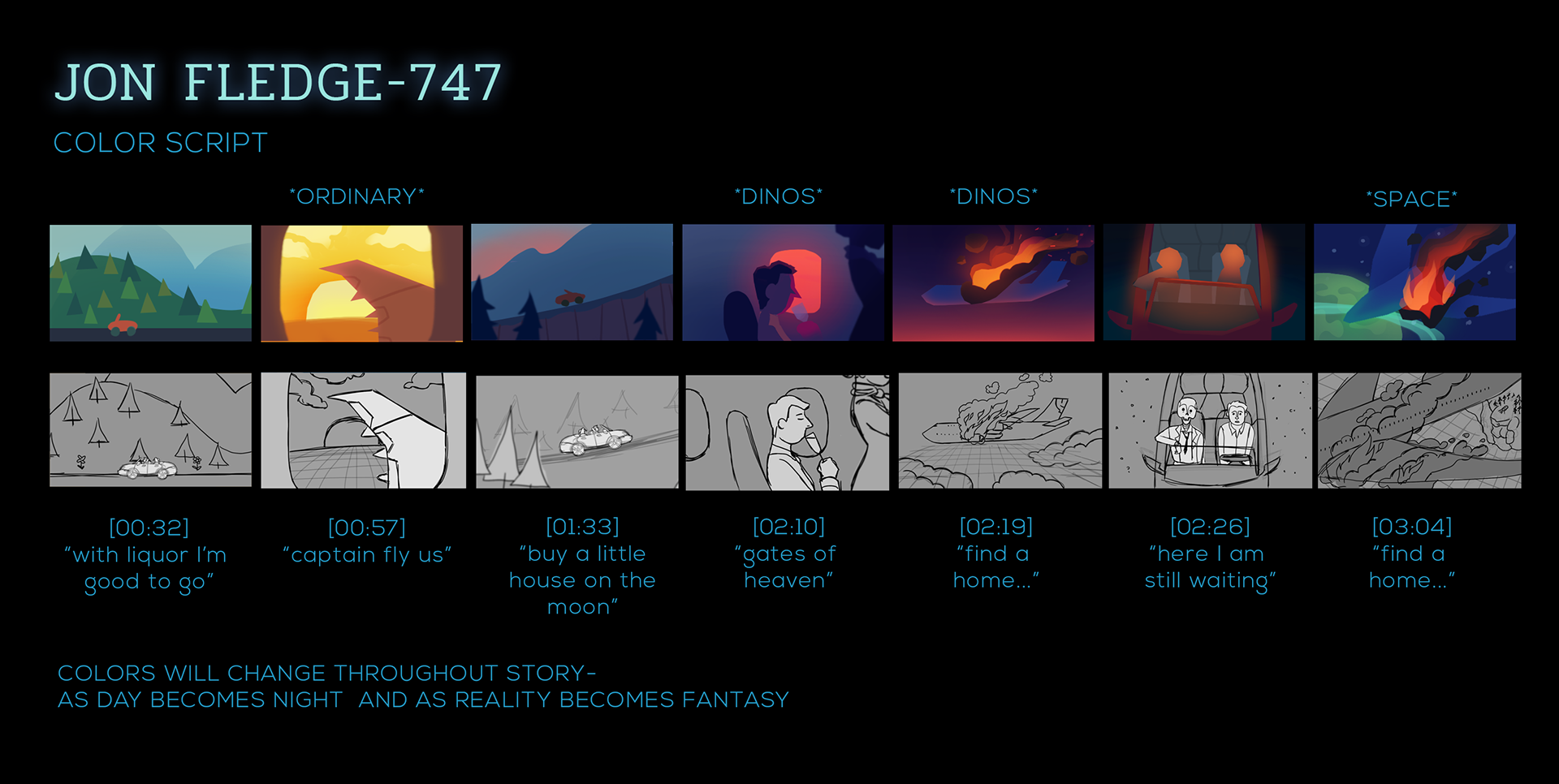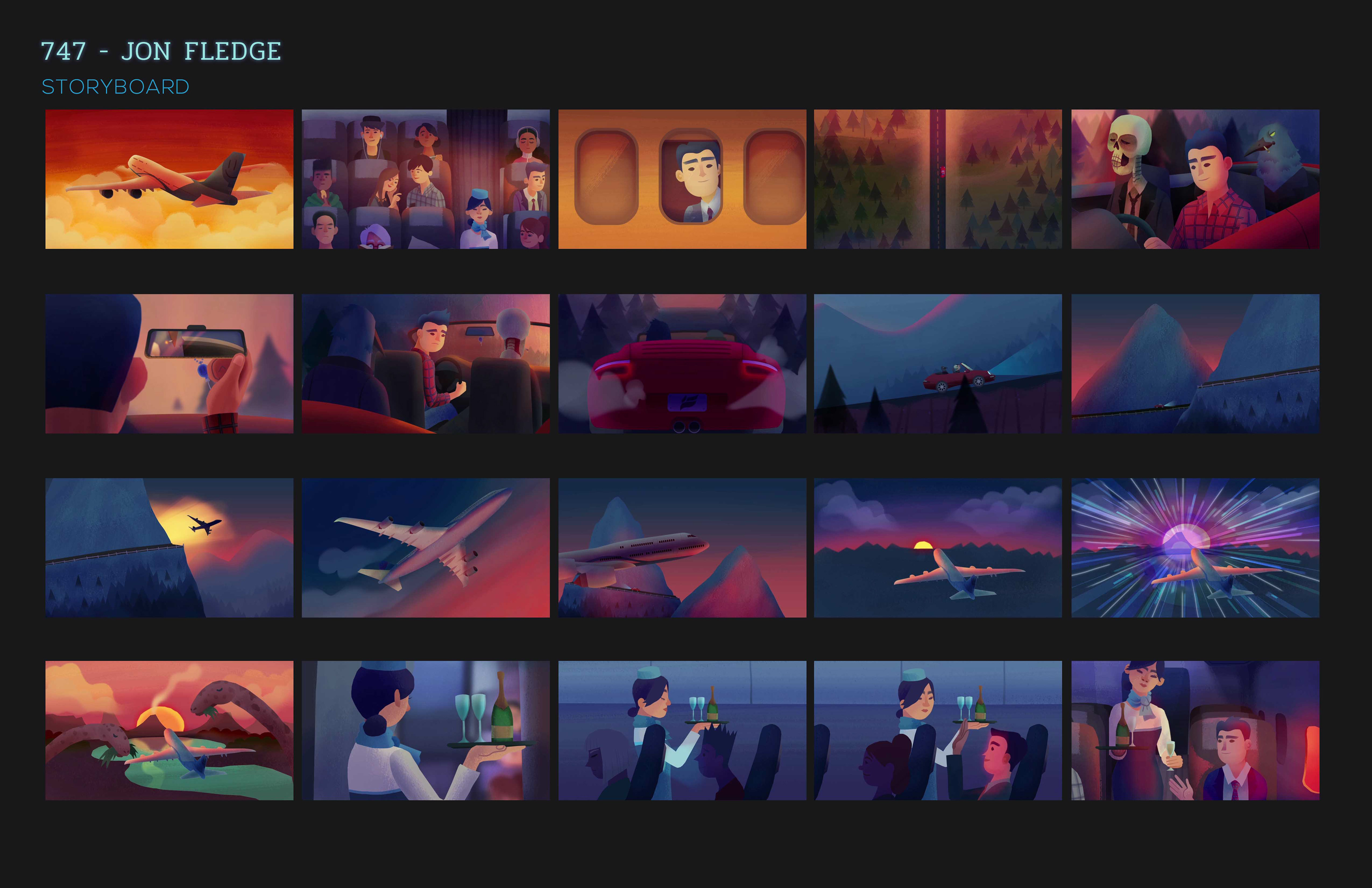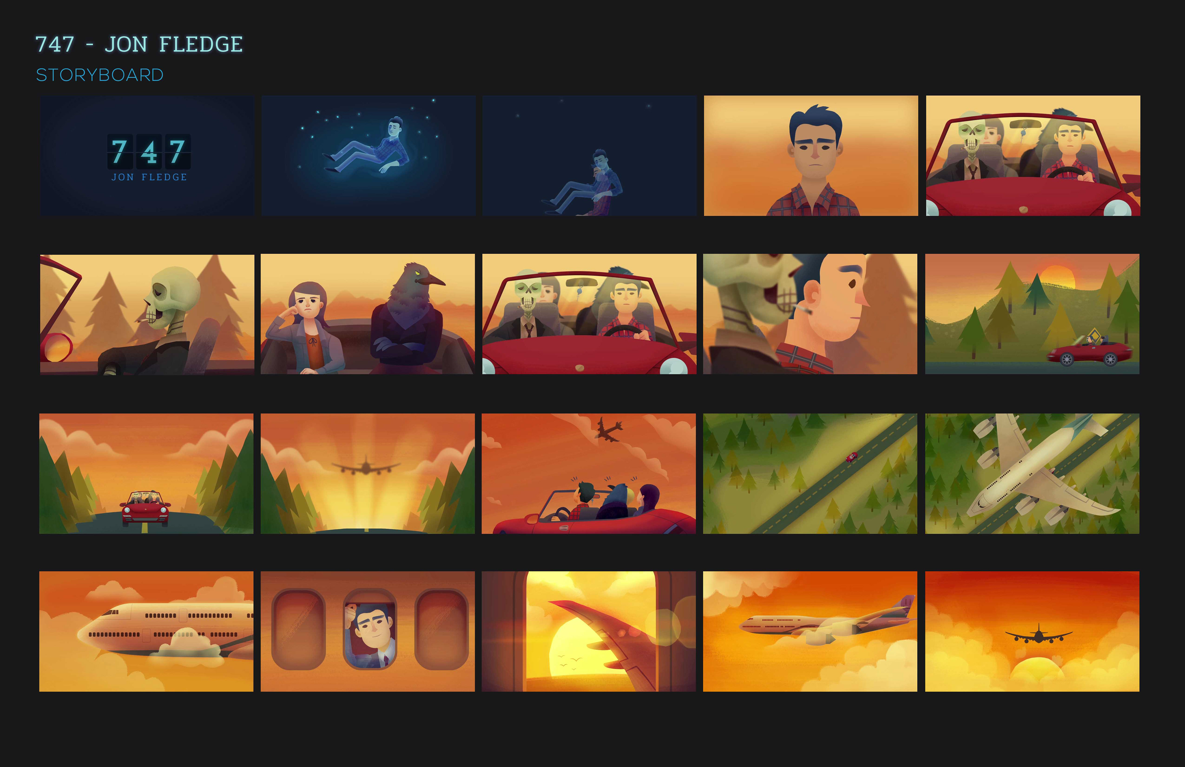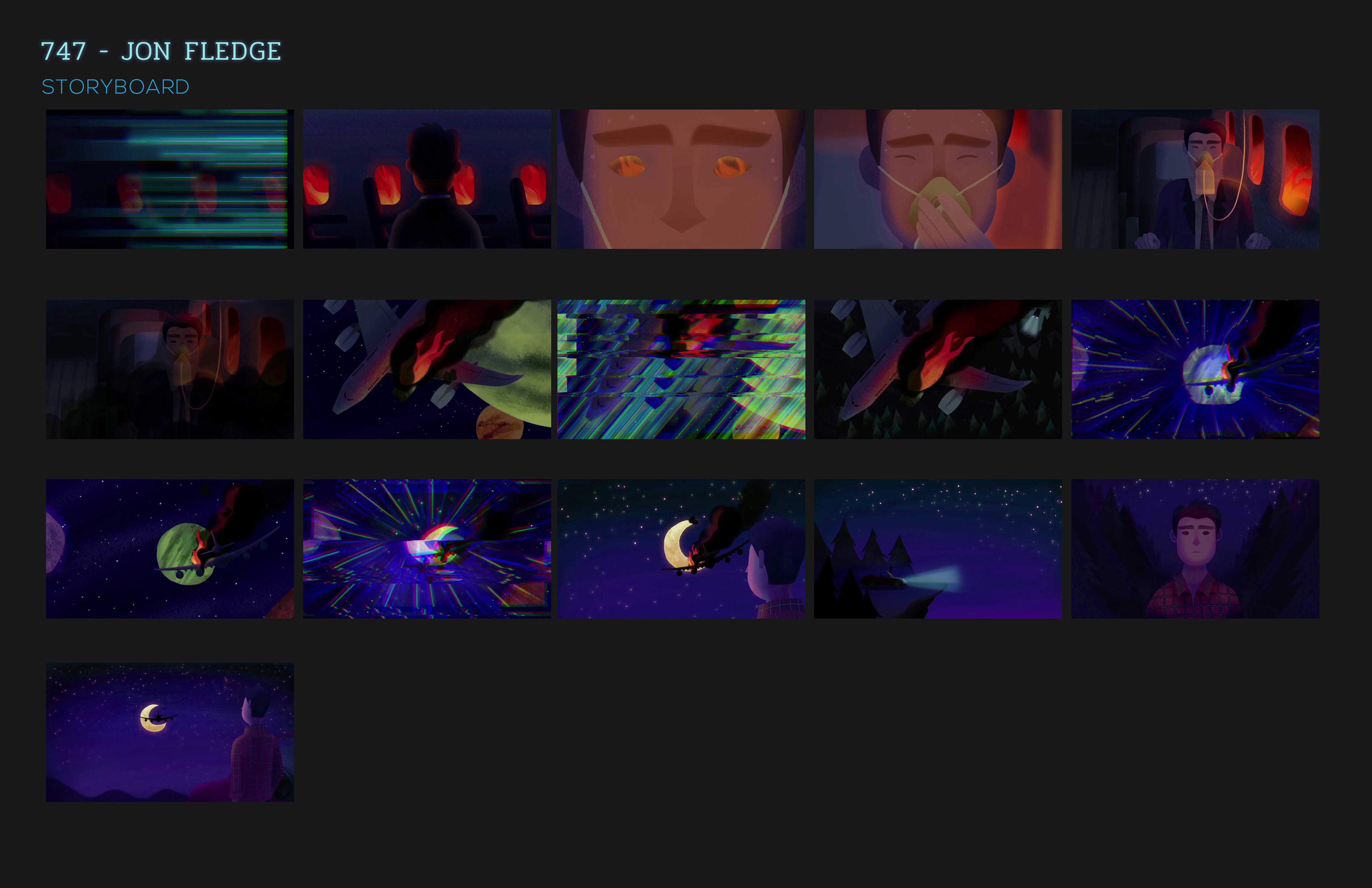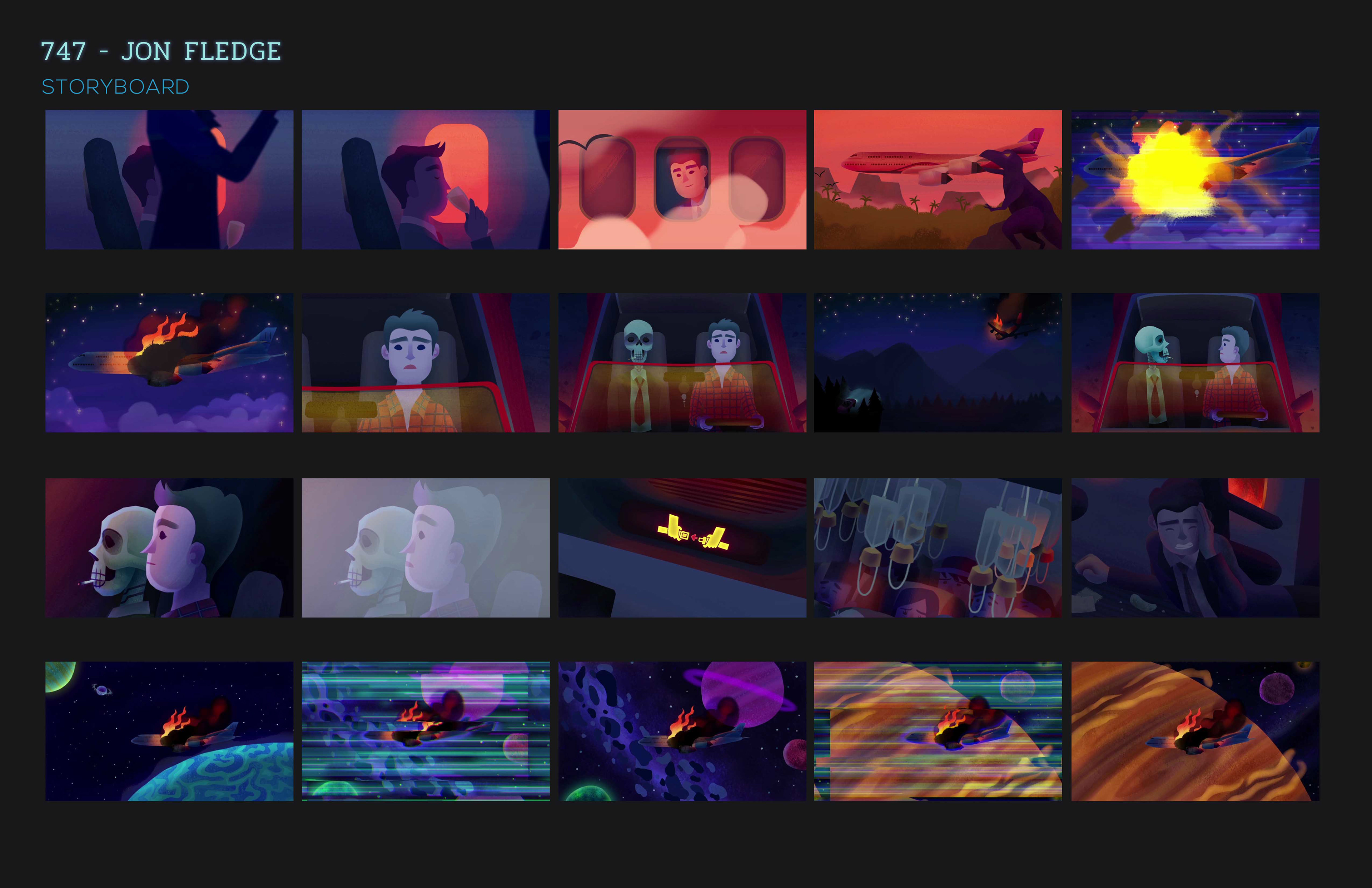 I worked with indie artist, Jon Fledge to create the storyboarding, art, color script, and animation for his music video, 747. I created my own pipeline and completed this project over the course of 5 weeks.